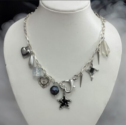 Midnight Charm Necklace – Edgy Silver Gothic Statement